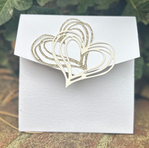 Cut out hearts with twinkly glitter gold mount. Colours can be changed.